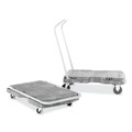 The Rubbermaid Commercial Triple Trolley efficiently transports large bulky loads and then folds flat for easy storage. The trolley has a sturdy structural foam deck that won't rust, dent, chip, or peel. The 3-position handle allows the user to push, pull, or fold flat for use as a dolly. Tough plastic construction is easy on walls and doors. The 5 in. casters are non-marking.