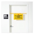 The Rubbermaid Commercial Hanging Safety Sign, Closed for Cleaning is mounted on a twist-action pole that extends up to 50 in. Wide to prevent entry through even wide hospital doors. This safety sign is made of a soft, pliable material that rolls around the pole for easy storage when not in use. The color is both ANSI and OSHA-compliant.