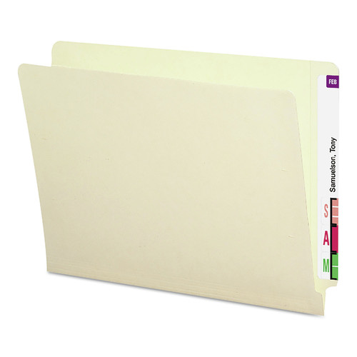 The industry standard for efficient shelf filing, these folders feature a reinforced tab for strength, embossed lines for easy label application and an undercut front panel for label readability. Popular for medical, dental and hospital filing as well as for large records management systems in financial and insurance firms. Double thick tab for long-lasting durability. Made of heavyweight 14 point manila stock for longer life. Straight-cut end tab for color-coded indexing.