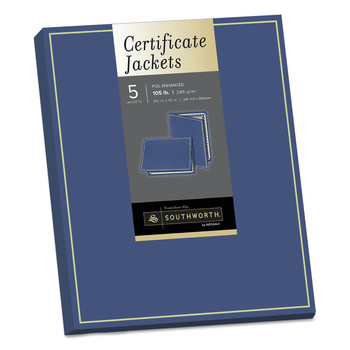 Southworth PF6-02 12 in. x 9.5 in. 88 lbs. Felt Finish Stock Certificate Jacket - Navy/Gold Border (5/Pack) Southworth Model: PF6-02
